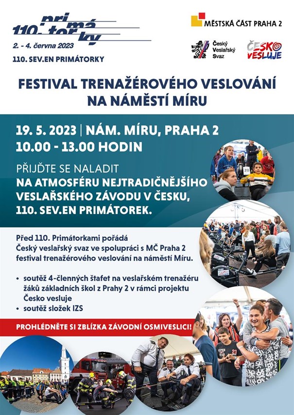 Před 110. Primátorkami pořádá veslařský svaz ve spolupráci s MČ Praha 2 festival trenažérového veslování. Vypravili jsme osm družstev-celkem 32 závodníků-do úžasné atmosféry kolektivního povzbuzování a výkonů nadoraz. Na fotkách z akce je vidět, s jakým úsilím se každý snaží podat co nejlepší výkon a s jakou vervou mu kamarádi fandí. Jak postupně končí jednotlivé kategorie a družstva se vracejí do školy s medailemi na krku, jsme na naše veslaře patřičně pyšní a okamžitě jsme jim gratulujeme. Závod stále probíhá – nyní jedou devítky.